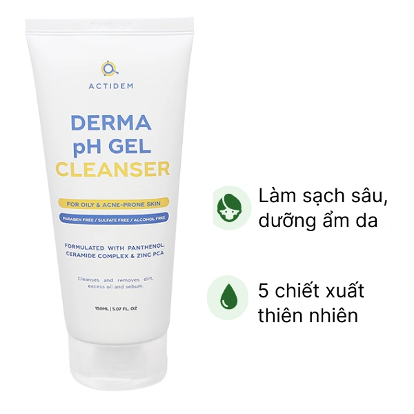 Gel rửa mặt Actidem Derma pH làm sạch dầu thừa, bã nhờn cho da dầu mụn
