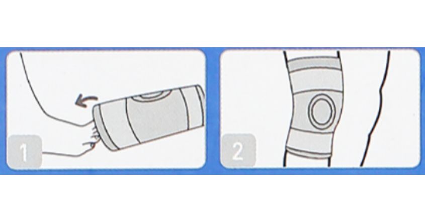Bước 1: Mang bao đeo từ từ vào đầu gối từ dưới lên, cân chỉnh vị trí miếng tròng đúng phần đầu gối.